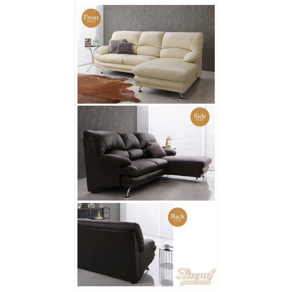 kag-34609 コーナーソファーL字 l型 3人掛け レザー 革 合皮 ( 右カウチ 木脚 ) ハイバック ボックス ヘッドレスト 脚 モダン クール スタイリッシュ デザイナーズ 高級