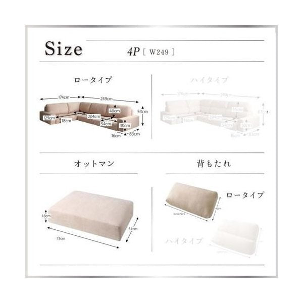 kag-34660 コーナーソファー コーナーソファ L字 おしゃれ 北欧 4人掛け 四人掛け 4P オットマン付き スツール 足置き 椅子 (+足置ロー 4P)