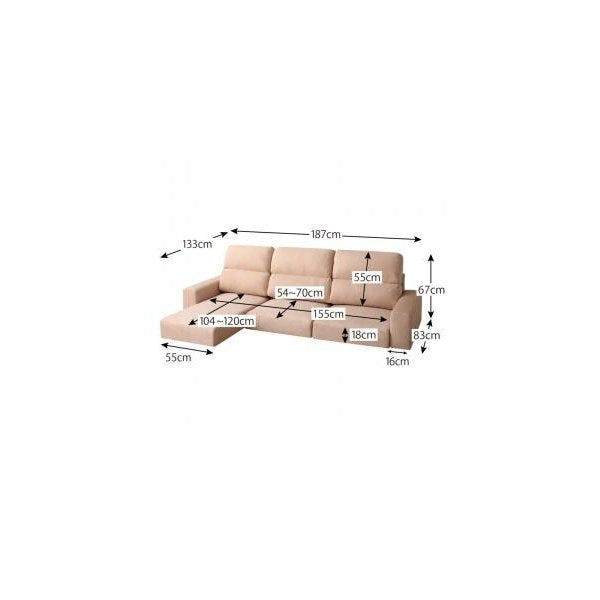 (約)横幅187(座面幅155) 奥行83 高さ54/67 cm