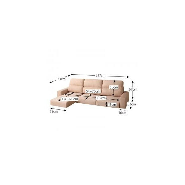 (約)横幅217(座面幅185) 奥行83 高さ54/67 cm
