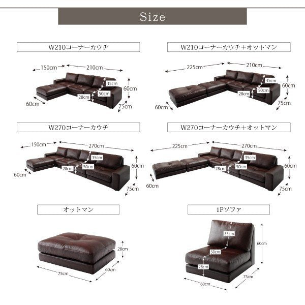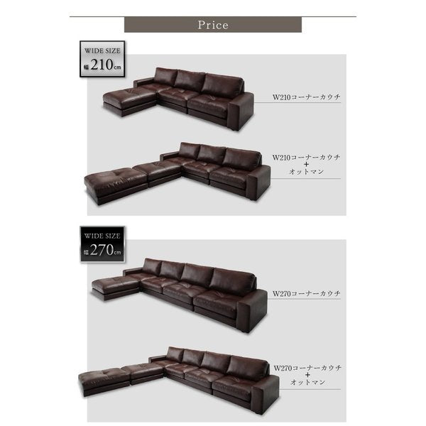 kag-34698 コーナーソファー L字 おしゃれ 4人掛け 四人掛け 4P オットマン付き 足置き 椅子 レザーソファー (+足置4P 幅270)
