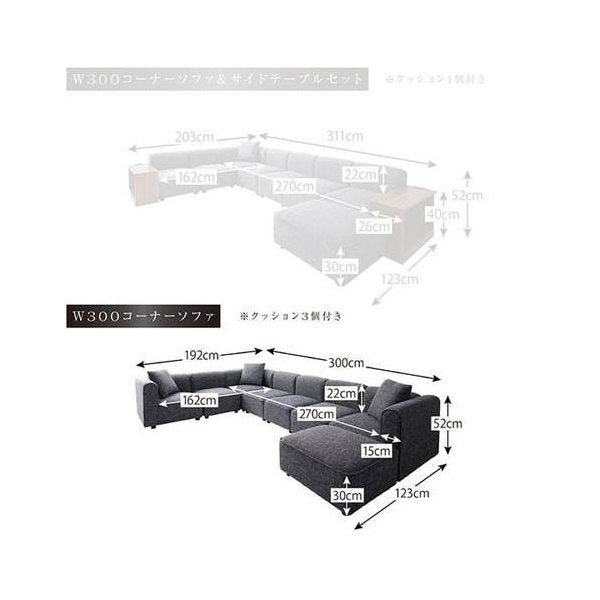 ※クッションは、コーナーソファ(W250/W300)に3個、コーナーソファ&サイドテーブルセット(W250/W300)に1個付いてきます。