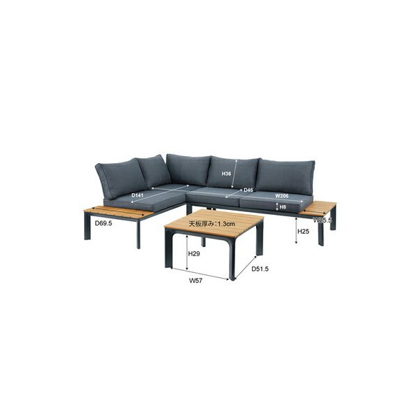 サイズ(cm) ソファ:幅231 奥行166/69.5 高さ74 座面高40 テーブル:幅70 奥行65 高さ35.5