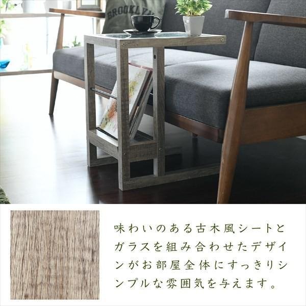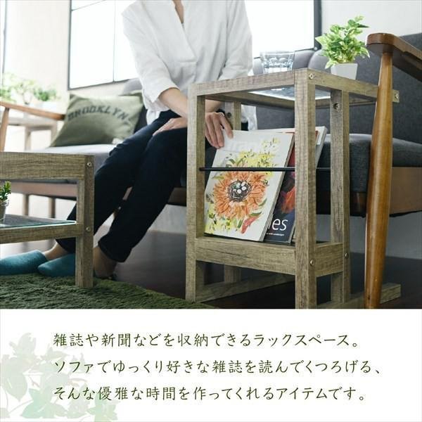 kag-37996 サイドテーブル 北欧 木製 アンティーク モダン ソファー ベッド横 ミニ コンパクト コーヒー ガラス 古木 幅35 奥行45 棚 ラック ヴィンテージ 西海岸 レトロ