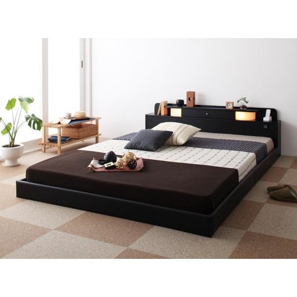 kag-10275 ベッド シングル ローベッド 低い 宮 棚 携帯 スマホ メガネ リモコン ラック ライト コンセント 充電 フレーム おしゃれ モダン 照明 SポケットCマットレス付