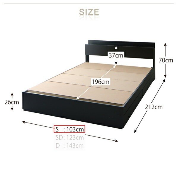 シングル:(約)幅103x長さ212x高さ70cm