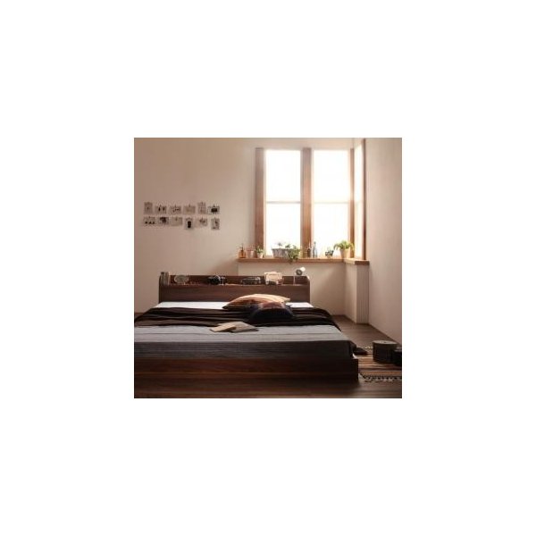 kag-10337 ベッド シングル ローベッド 低い 棚 宮付き スマホ メガネ リモコン コンセント 充電 フレーム 北欧 おしゃれ モダン ヴィンテージ SボンネルCマットレス付