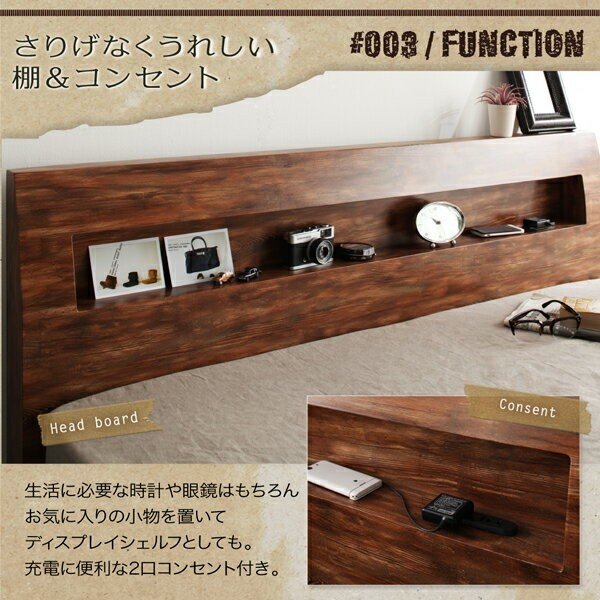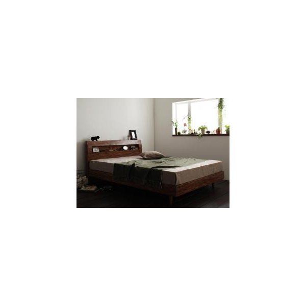 kag-10462 シングル ローベッド 低い 棚 宮付き スマホ リモコン コンセント 充電 西海岸 ヴィンテージ すのこ フレーム 北欧 おしゃれ 脚付き SボンネルCマットレス付