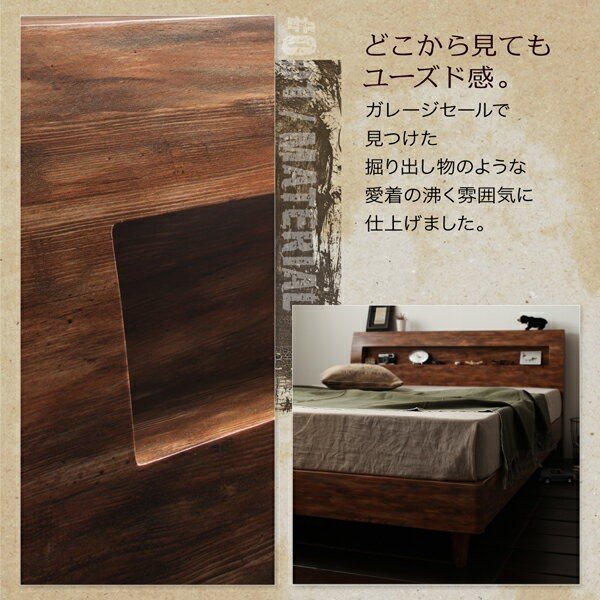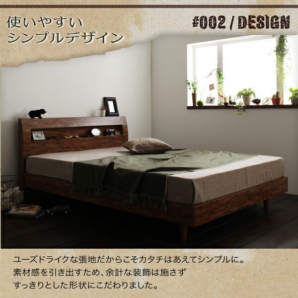 kag-10465 シングル ローベッド 低い 棚 宮付き スマホ リモコン コンセント 充電 西海岸 ヴィンテージ すのこ フレーム 北欧 おしゃれ 脚付き SポケットCマットレス付