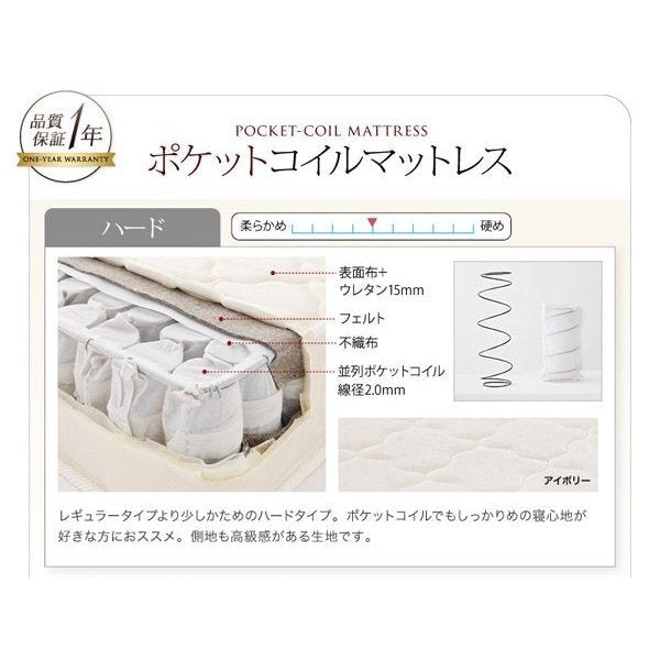 プリント化粧板(ヘッドボード)ウレタン塗装仕上げ、合成皮革(サイドフレーム、フットボード)、10W白熱灯×2、1500W2口コンセント