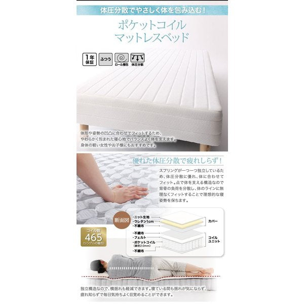 kag-11054 ベッド シングル 脚付き マットレスベッド ベンチ ローベッド ロータイプ 低い ヘッドレス 足付 おしゃれ お姫様 かわいい ガーリー 子供 ルンバ ポケットC 脚15
