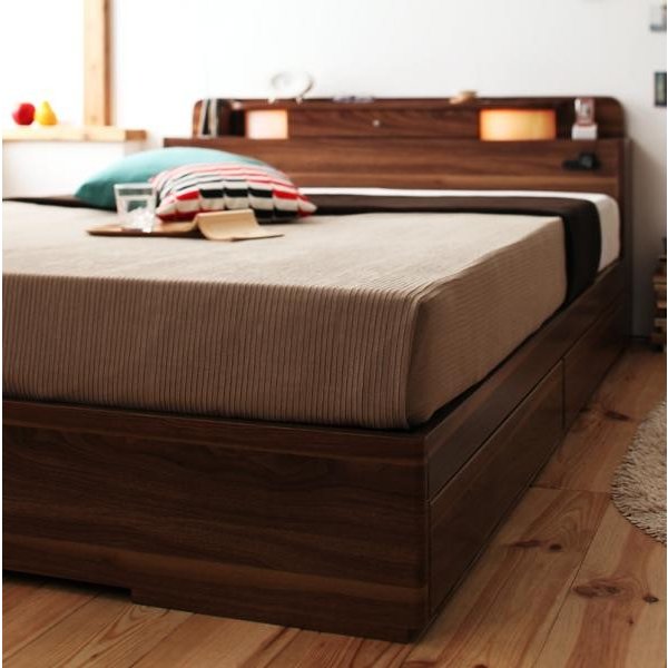 kag-11101 シングル ベッド チェスト 下収納 引き出し 大容量 宮 棚 スマホ リモコン ラック ライト コンセント 充電 収納 フレーム 北欧 おしゃれ ヴィンテージ 照明