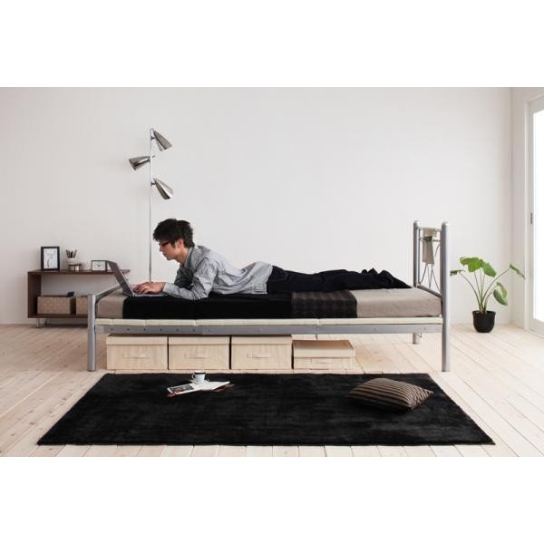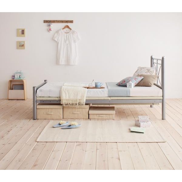 kag-11683 ベッド シングル パイプベッド アイアン スチール ベッド下収納 高い 床下 大容量 子供 成長 伸長式 伸縮 長さ 調整 調節 高さ フレーム 薄型 レトロ 脚付き