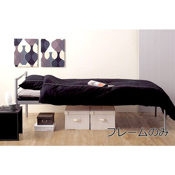 kag-14310 パイプベッド アイアン スチール シングルベッド シングルベット ベッドフレーム 安い 一人暮らし シルバー 床下収納スペース 簡易ベッド 軽量