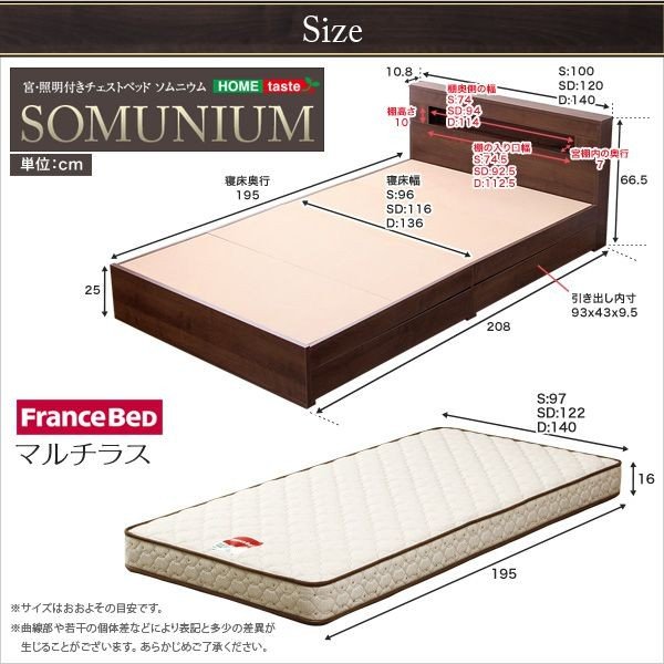 kag-26798 シングル ベッド チェスト 下収納 引き出し 大容量 宮 棚 スマホ ラック ライト 木製 高級 コンセント 充電 ローベッド 照明 マルチラスSS マットレス付