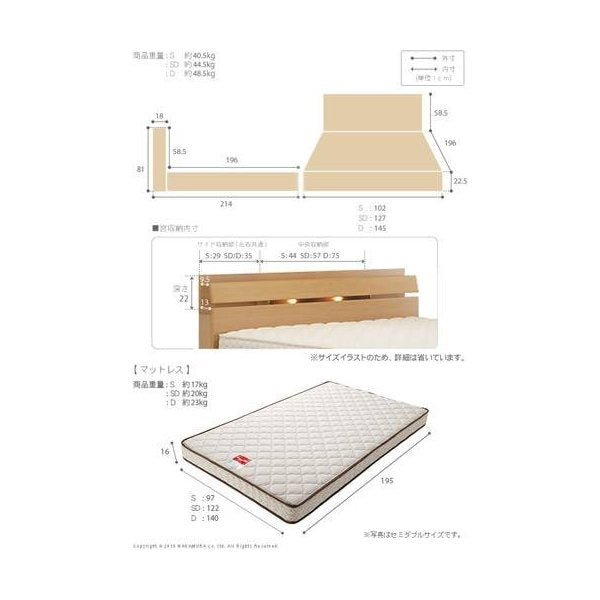 kag-36249 ベッド シングル フレーム おしゃれ 安い 北欧 一人暮らし マットレス付き ライト 宮付き 枕元 棚 収納なし マルチラススーパーS 日本製 国産 コンセント 読書