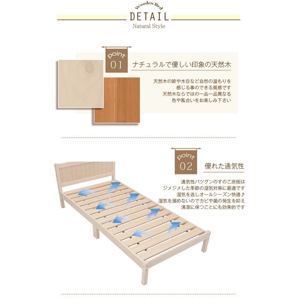 kag-37662 ベッド シングル パイン材 約 幅100×奥行206×高さ69×床面高28cm