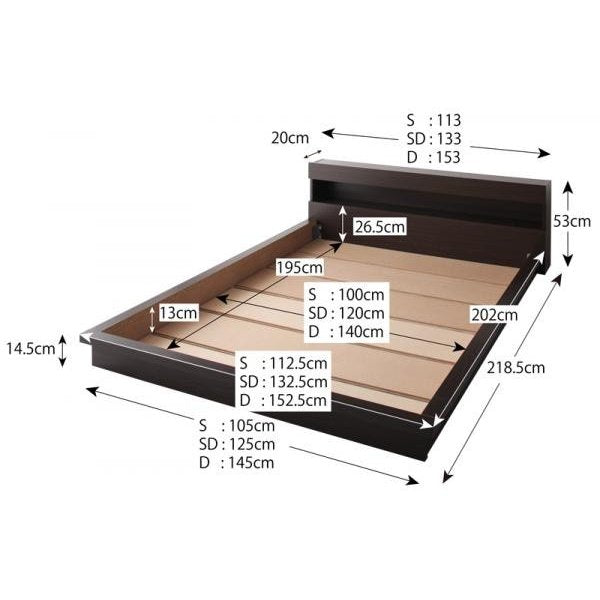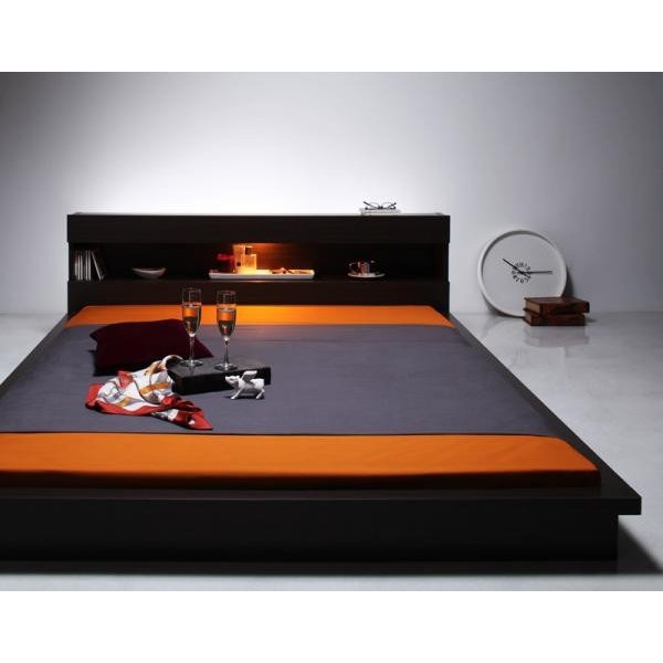 kag-3917 シングル ローベッド 低い 宮 棚 スマホ リモコン ラック ライト フレーム 北欧 おしゃれ ヴィンテージ コンセント 充電 照明 すのこ (ボンネルCマットレス付)