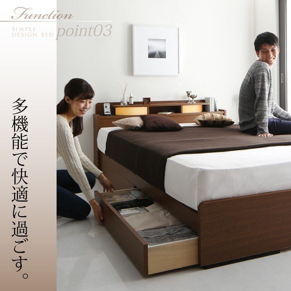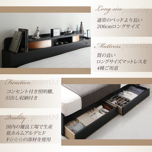 kag-40062 シングルベッド 一人暮らし マットレス付き チェスト ベッド下 収納 引き出し 大容量 ロング 宮 棚 携帯 リモコン 照明 読書 ライト コンセント スマホ 充電
