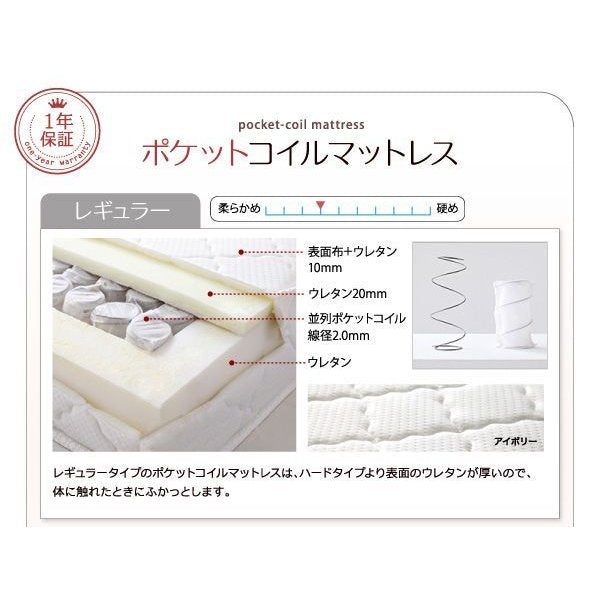 標準ポケットコイルマットレス付き セミシングル ショート丈