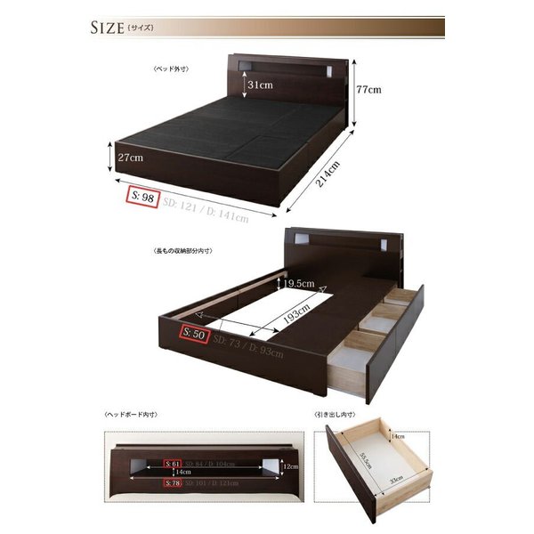 kag-40105 シングルベッド 一人暮らし マットレス付き チェスト ベッド下 収納 引き出し 大容量 宮 棚 携帯 照明 読書 ライト コンセント スマホ 充電 ヴィンテージ
