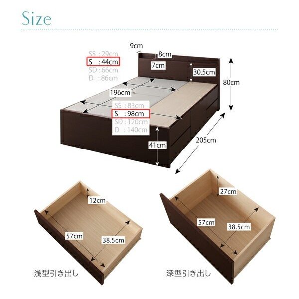 セミダブル :(約)幅66×長さ193×深さ36cm