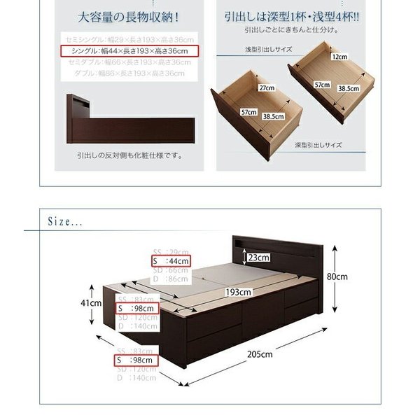 (セミダブル) :(約)幅66×長さ193×深さ36cm