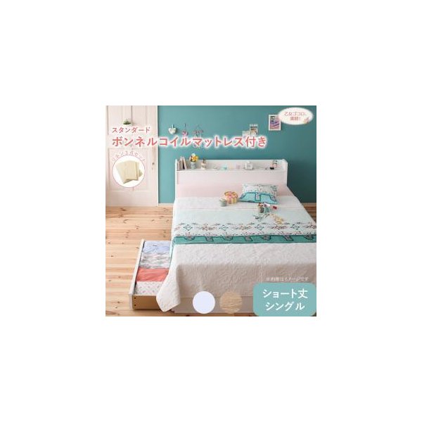 シングルベッド 一人暮らし ショート丈 マットレス付き チェストベッド ミドル ベッド下収納 引き出し付き 大容量 パッドシーツ付き 宮付き ヘッドボード 枕元 棚 ラック 携帯置き ティッシュ置き メガネ置き リモコン 頭上 収納 コンセント ゲーム ケーブル スマホ 充電 電気 姫系 かわいい ガーリー シャビー アンティーク プリンセス
