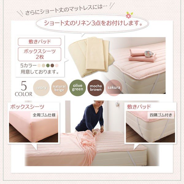 当品は標準ボンネルマット付・リネン3点・S・ショート丈