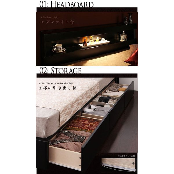 シングルベッド 一人暮らし マットレス付き チェストベッド ミドル ベッド下収納 引き出し付き 大容量 宮付き ヘッドボード 枕元 棚 ラック 携帯置き ティッシュ置き メガネ置き リモコン 頭上 収納 照明 読書灯 ライト 読書 電気 コンセント ゲーム ケーブル スマホ 充電 デザイナーズ ホテル モダン 高級 メンズ