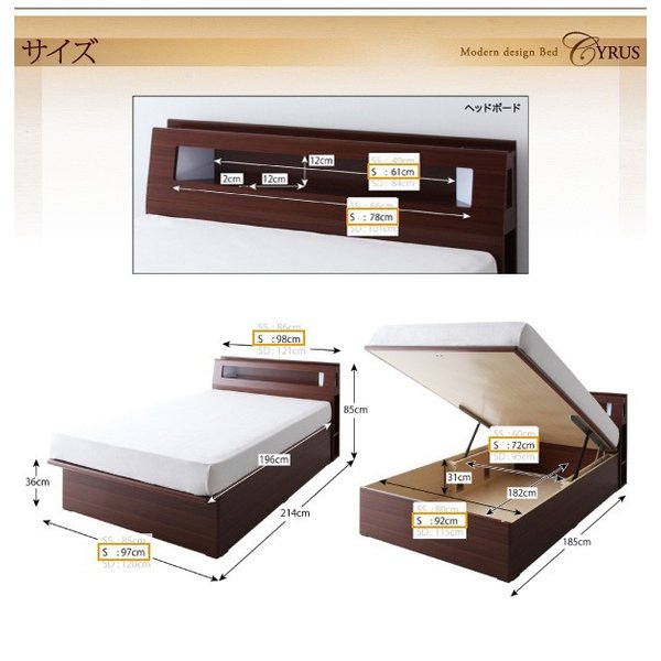 kag-40451 シングルベッド 一人暮らし マットレス付き 跳ね上げ式 ガス圧 ベッド下 収納付き 大容量 宮 棚 携帯 収納 照明 ライト コンセント スマホ 充電 ヴィンテージ
