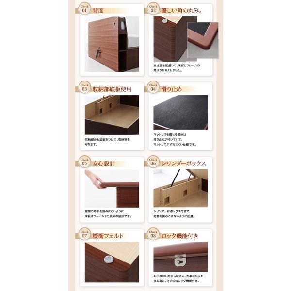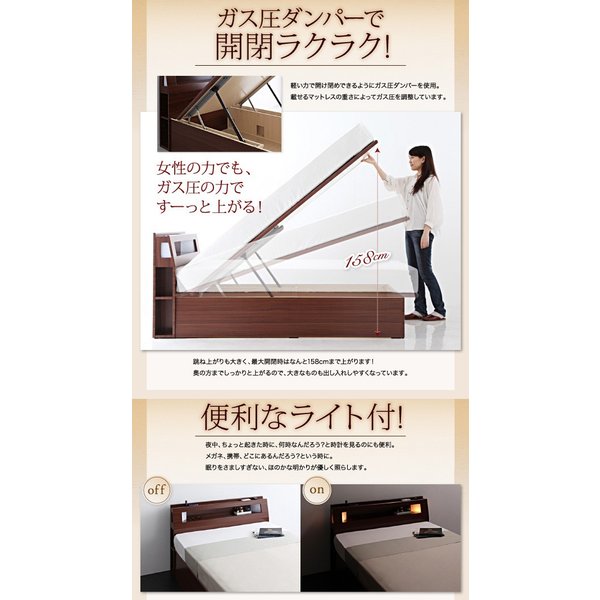 kag-40464 シングルベッド 一人暮らし マットレス付き 跳ね上げ式 ガス圧 ベッド下 収納付き 大容量 宮 棚 携帯 収納 照明 ライト コンセント スマホ 充電 ヴィンテージ
