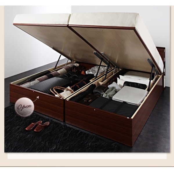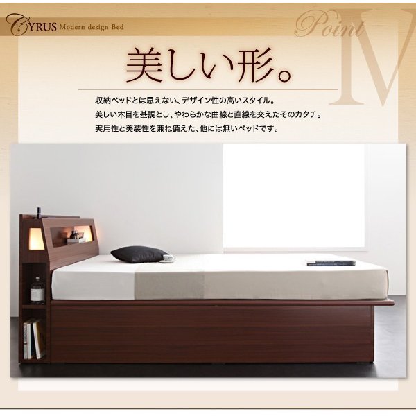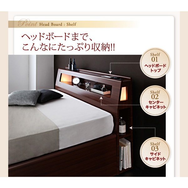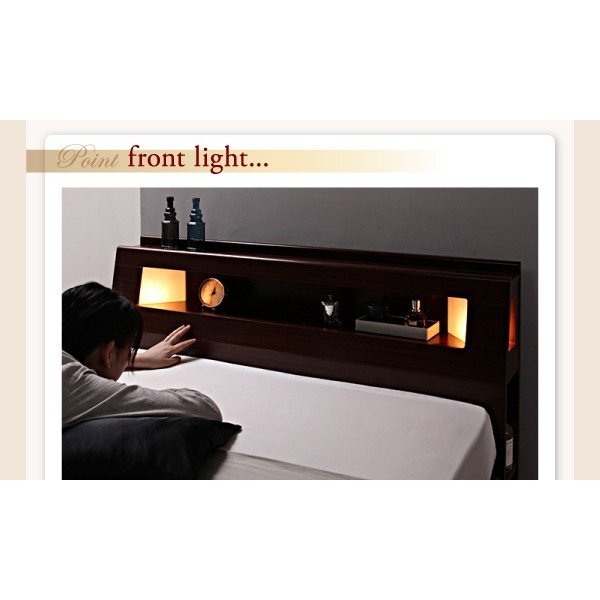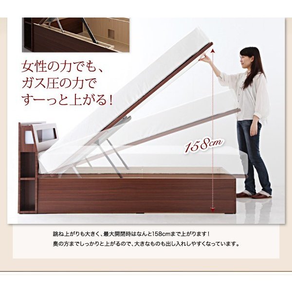 kag-40476 シングルベッド 一人暮らし マットレス付き 跳ね上げ式 ガス圧 ベッド下 収納付き 大容量 宮 棚 携帯 収納 照明 ライト コンセント スマホ 充電 ヴィンテージ