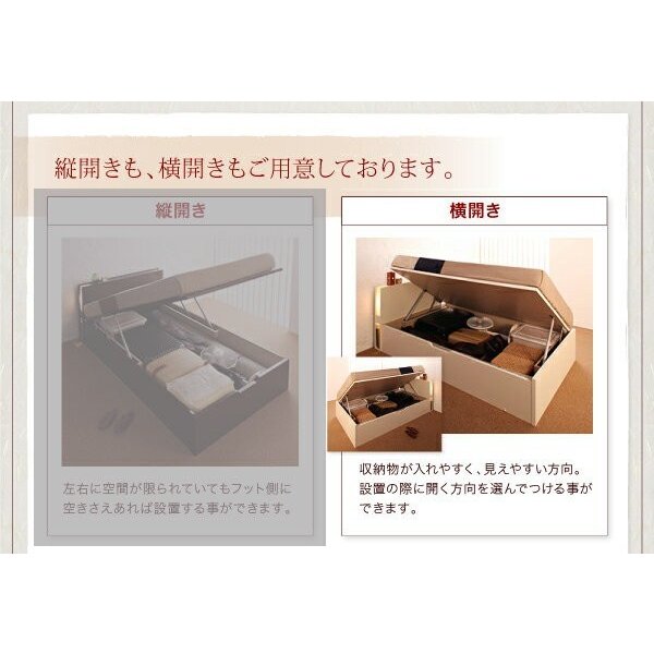 kag-40700 シングルベッド 一人暮らし マットレス付き 跳ね上げ式ベッド ガス圧 ベッド下 収納付き 大容量 宮 棚 携帯 収納 ライト 照明 読書 コンセント スマホ 充電