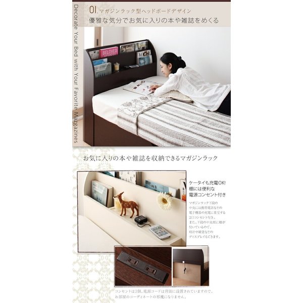 kag-40980 シングルベッド 一人暮らし マットレス付き 跳ね上げ式ベッド ガス圧 ベッド下 収納付き 大容量 宮 棚 携帯 収納 携帯 スマホ 充電 コンセント ヴィンテージ