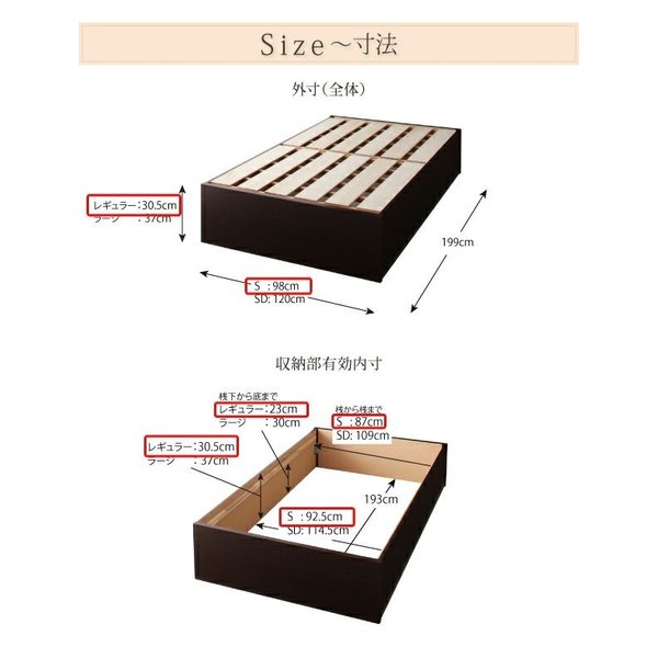 セミダブル:(約)幅109×長さ193×深さ30cm