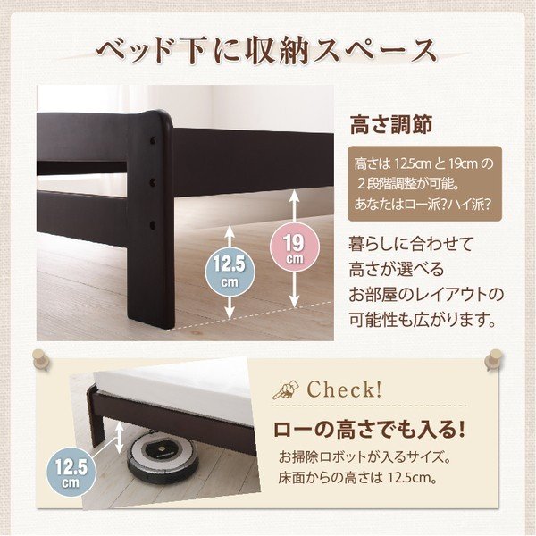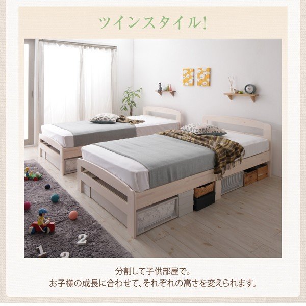 kag-41218 ベッド シングル 2台セット 兄弟 家族 親子 フレーム ベッド下 収納スペース 高い 床下 全面収納 2台 高さ調節 ロー 低い 布団可 すのこ 通気性 カビ 脚 足