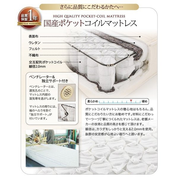 kag-4122 シングル ベッド チェスト 引き出し 大容量 宮 棚 スマホ ライト コンセント 充電 フレーム アンティーク 姫系 かわいい 国産カバーポケットCマットレス付