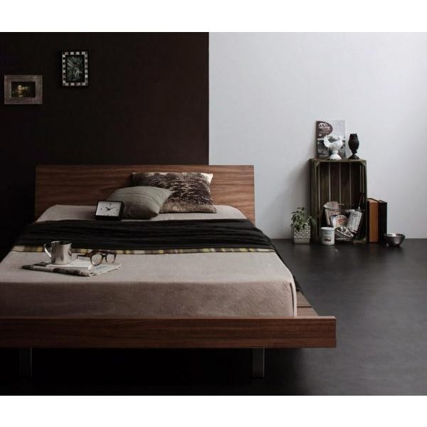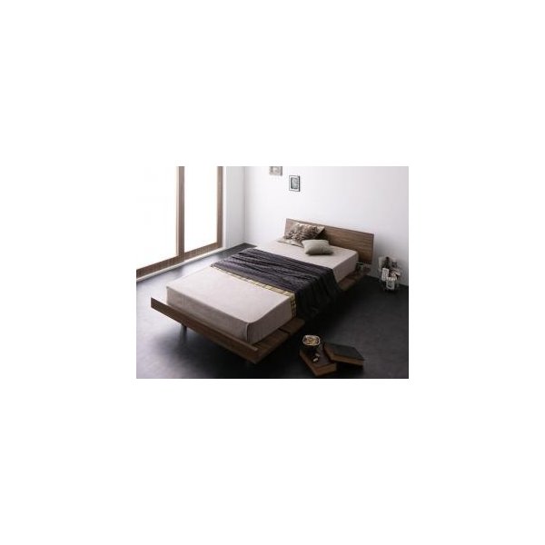 kag-4653 ベッド シングル ローベッド 低い フレーム フラット ヘッドボード 薄型 板 北欧 おしゃれ ヴィンテージ 脚付き SポケットCマットレス付 ステージ 枠幅120