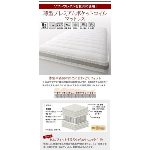 要組立 薄型プレミアムポケットコイルマットレス付き 縦開 シングル 深さグランド