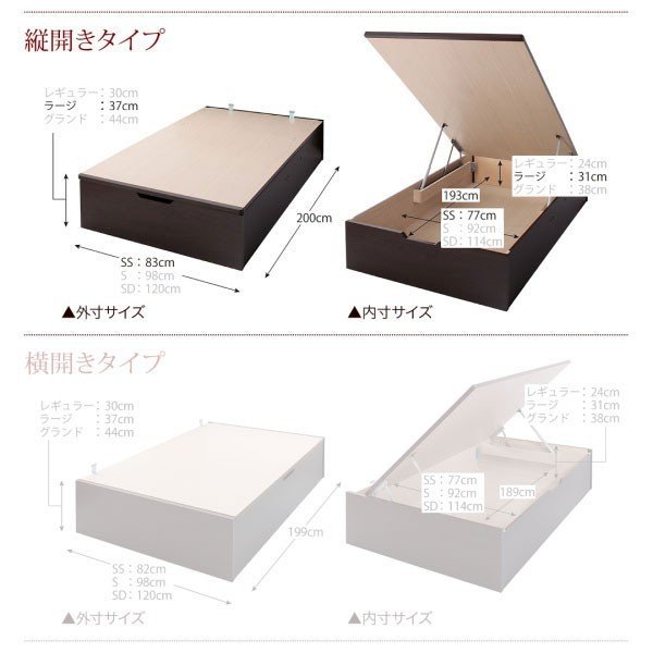 組立付 ベッドフレームのみ 縦開 セミシングル 深さラージ