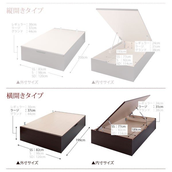 <床面高さ・縦横共通>(約)レギュラー:30cm、ラージ:37cm、グランド:44cm
