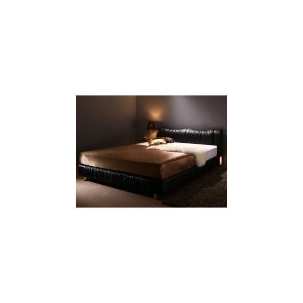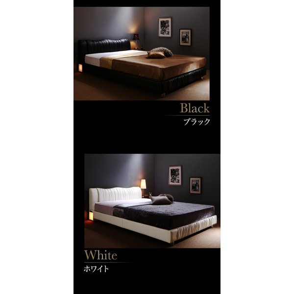 kag-51475 シングルベッド 一人 マットレス付 ロー 低い 背もたれ クッション 照明 ライト コンセント 収納 スマホ 充電 すのこ 通気性 カビ レザー 脚 足 アンティーク