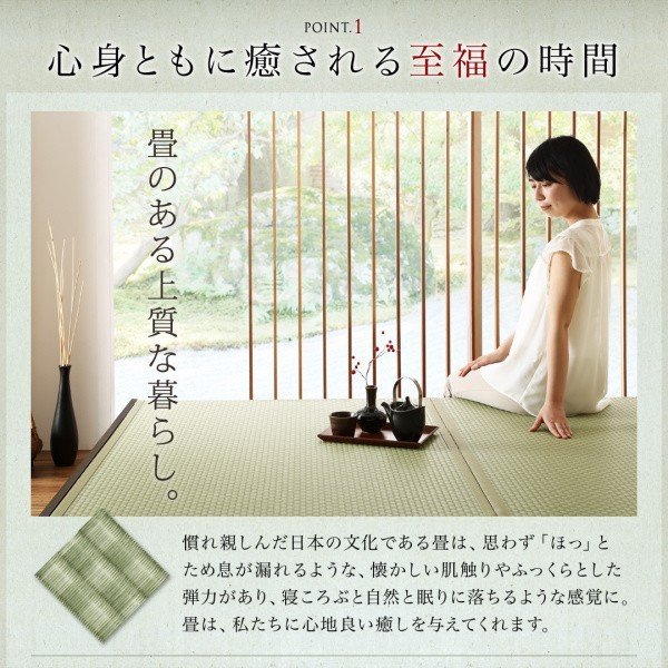 畳:ポリプロピレン・炭酸カルシウム(セキスイ畳表「美草」使用)インシュレーション