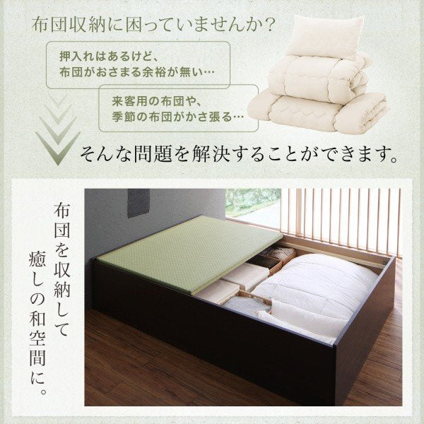 kag-51828 シングルベッド 一人 フレーム 日本製 国産 畳 硬め 腰痛 通気性 カビ 湿気 和室 ベッド下収納 高い 床下収納スペース 全面収納 ヘッドレス 布団可 布団収納
