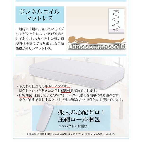 ※ベッドのフレームはスプリングマットレス使用時の基準で強度計算されておりますので