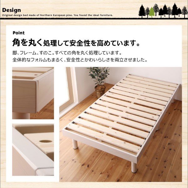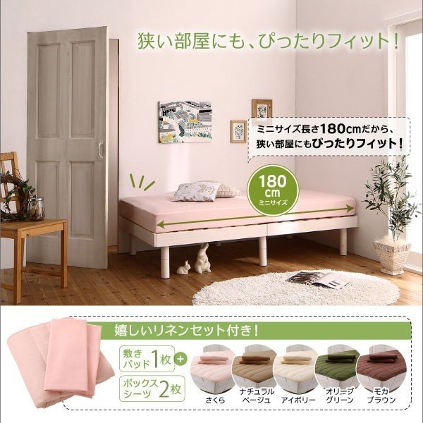 kag-53253 セミシングルベッド 一人 コンパクト ショート丈 小さい マットレス付 ベッド下 収納 高い 床下 全面 パッド付 ヘッドレス すのこ 通気性 カビ 脚 北欧 おしゃれ