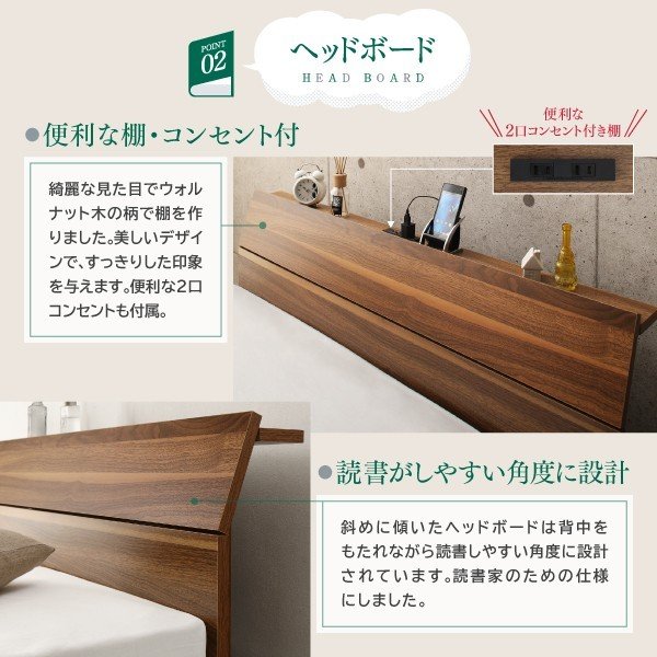 kag-53440 シングルベッド 一人 マットレス付 ベッド下 収納 大容量 床下収納スペース ロー 低い 宮 棚 携帯 コンセント スマホ 充電 布団可 北欧 おしゃれ アンティーク