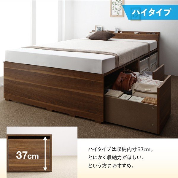 kag-53482 シングルベッド 一人暮らし フレームのみ ベッド下収納スペース 高い 床下 大容量 宮 棚 携帯 コンセント スマホ 充電 布団可 フラット床板 箱型 ヴィンテージ