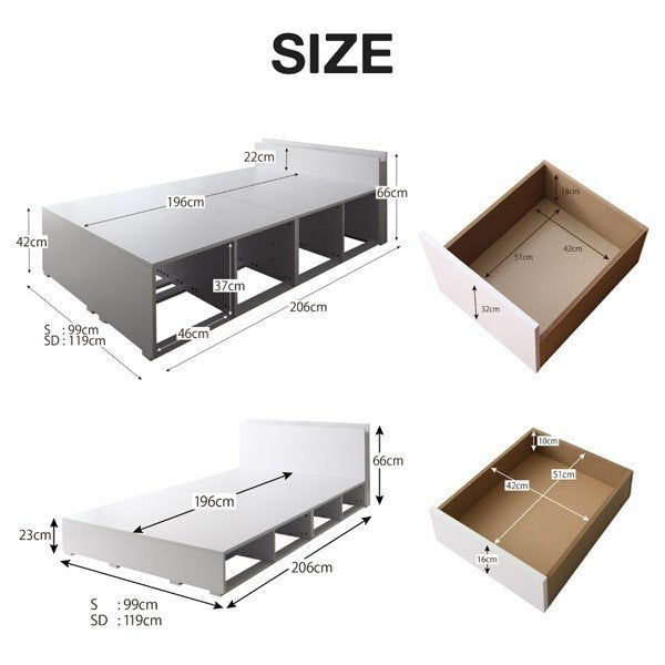 薄型標準ボンネルコイルマットレス付き シングル 引き出し4個 ハイタイプ